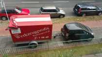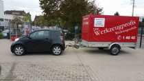 Hintergrund ist, dass bei uns Nachwuchs vor der Tür steht und es zu dritt inklusive Kinderwagen und leichtem Gepäck im iQ schwierig werden dürfte... Da wir in dieser Konfiguration vermutlich nicht allzu häufig unterwegs sein werden, wollen wir uns erstmal kein neues Auto anschaffen, sondern versuchen, den iQ, so lange es irgendwie geht, zu behalten. Darum haben wir uns einen AHK-Fahrradanhänger besorgt, auf den man eine Box montieren kann, die 330 Liter fasst und genau die richtigen Maße für den Kinderwagen hat. Ob das für die gelegentlichen Fahrten wirklich praktisch ist (hübsch ist es schonmal nicht
