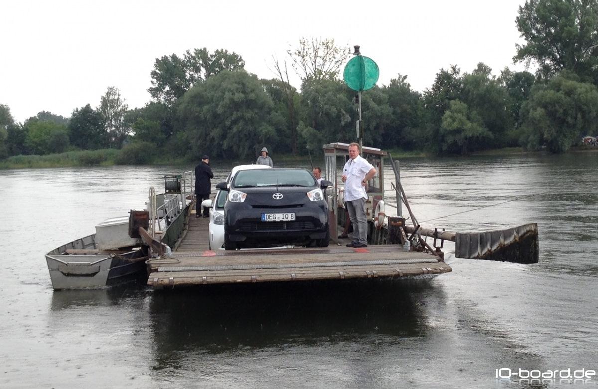 Nach einer Blitzvisite auf der diesjährigen Landesgartenschau in Deggendorf, trafen wir (FrecheOlle + Anhang, HSEDV + Anhang) uns mit Prinz Shorty um mit ihm gemeinsam die Innenstadt von Deggendorf unsicher zu machen. Nach einer Kombination von Mittag- und Eis-Essen und anschließendem Bummel durch die Innenstadt beschlossen wir, unsere iQs mal auf der Donau schwimmen zu lassen. Ohne Fähre hätte dies nicht so gut geklappt wie es geklappt hat und dies trotz einsetzendem Regen. Der Fährmann und wir hatten auf alle Fälle unseren Spaß! Im Anschluß fuhren wir hinauf zum